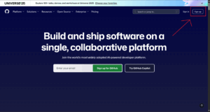 打开github后就得注册了,这时候可以翻译一下,然后我们点击右上角的sign up(注册)